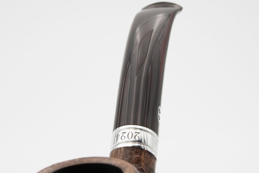 In diesem Jahr hat sich Chapuis-Comoy & Cie für eine gebogene Brandy Form entschieden, die angenehm in der Hand liegt. Die Kollektion verfügt über einen Aluminiumring und ein Mundstück aus Cumberland.