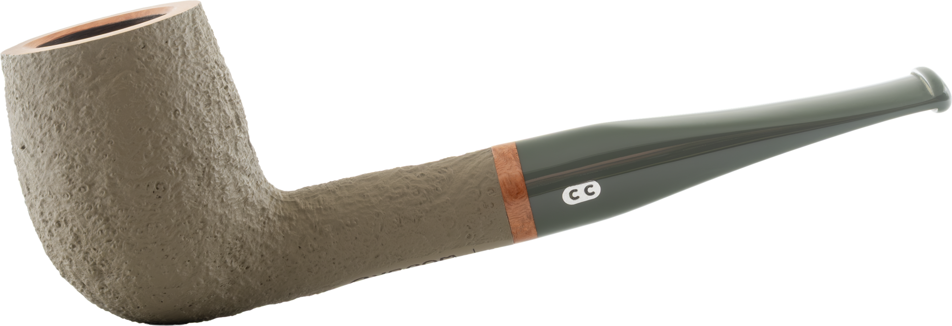 Mit sandgestrahlter und grau lackierter Oberfläche vereint Chacom Ginkgo Eleganz und Ausgewogenheit in einer Serie. Der naturbelassene Kopf betont die Schönheit des Bruyèreholzes, während der Bruyèrering und das grüngraue Acrylmundstück einen harmonischen Kontrast schaffen. Hergestellt in Saint-Claude, dem Zentrum französischer Pfeifenhandwerkskunst, bietet diese Serie dank 9 mm Filtersystem mit Adapter und Metallfilter ein komfortables und raffiniertes Raucherlebnis.