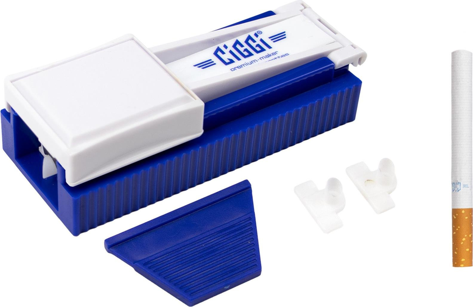 Ein Zigarettenfertiger (auch Zigarettenmacher oder Stopfgerät) wie der Ciggi Slim ist ein kleines, handliches Gerät, mit dem du selbst Slim‑Zigaretten mit dünnen Hülsen Ø 6 mm ohne großen Aufwand herstellen kannst. Diese Fertiger werden separat verkauft und kommen in Einzelverpackung, also als Einzelstück‑Produkt.