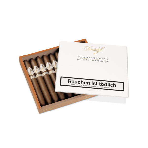 Die Davidoff Grand Cru Diademas Finas Limited Edition Collection ist eine exklusive Limited Edition der Grand Cru-Linie von Davidoff und bildet den Abschluss der „Cigar History Re-Rolled“ Serie im Rahmen der „The Difference“-Kampagne. Sie würdigt Zino Davidoffs Vision, Zigarren zu kreieren, die ähnlich komplex wie ein fein komponierter Bordeaux-Wein sind.