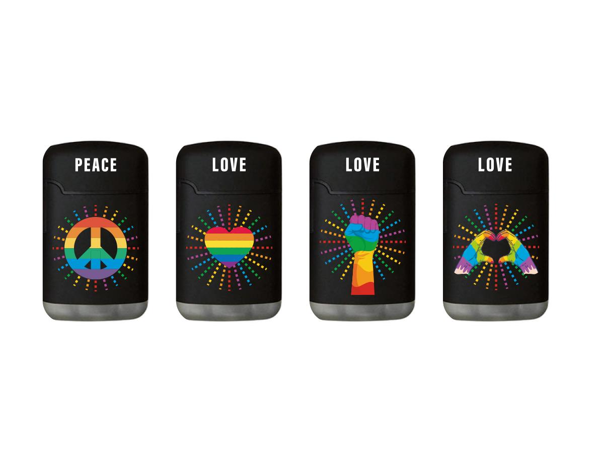 ein einfaches, günstiges Jet-Feuerzeug mit dekorativem Pride-Relief und Alltagsfunktion