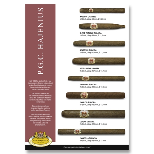 Hajenius Senoritas Sumatra sind aromatische Shortfiller‑Zigarren im Senoritas‑Format, die den vollen Geschmack großer Zigarren mit dem Komfort eines kompakteren Formats verbinden. 🇳🇱 Sie stammen aus der traditionsreichen Produktion des Hauses Hajenius, das seit 1826 nach strengen Qualitätsstandards verarbeitet wird und für seine Sumatra‑Reihen bekannt ist.