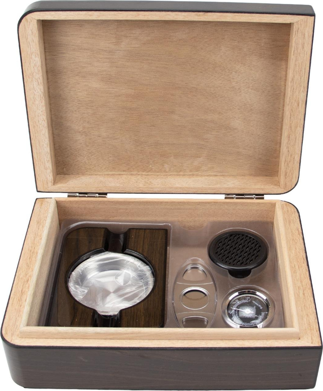 Humidor-Set Walnut Finish Pianolack für ca. 25 Zigarren