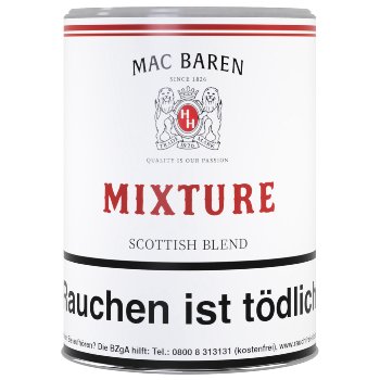 Mac Baren Mixture ist einer der bekanntesten Klassiker des dänischen Hauses Mac Baren und zählt zu den traditionsreichsten leicht aromatisierten Virginia-Burley-Mischungen. Seit Jahrzehnten gilt er als zuverlässiger Allround-Tabak mit ausgewogenem Geschmack und sehr angenehmer Raumnote.