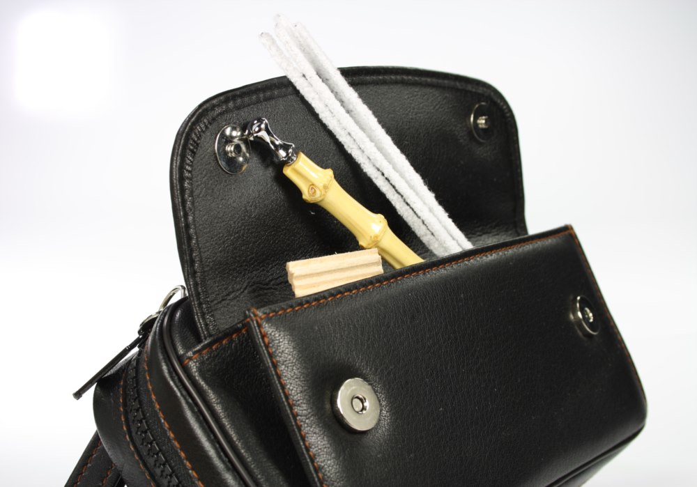 herausnehmbaren Tabakbeutel. Aus weichem Metislammleder, von erfahrenen