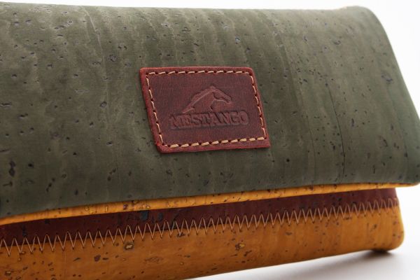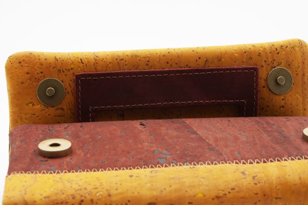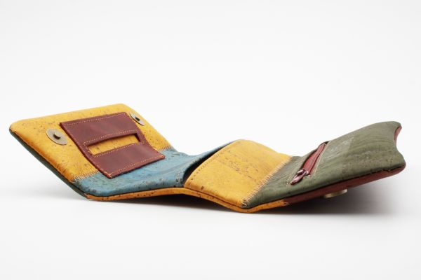Der Beutel besteht aus mehreren laminierten Schichten dünn geschnittener Korkeiche, die auf einem robusten, gummierten Träger befestigt sind. Durch dieses aufwendige Herstellungsverfahren entsteht eine außergewöhnlich weiche, zugleich widerstandsfähige Oberfläche, die an hochwertige Lederwaren erinnert – ohne chemische Gerbung.