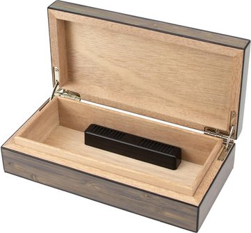 Der Mini Zigarren-Humidor im glänzenden Bambusdekor vereint elegantes Design mit praktischer Funktion. Mit Platz für ca. 5 Zigarren ist er ideal für Einsteiger, kleine Sammlungen oder den stilvollen Einsatz zuhause oder im Büro.