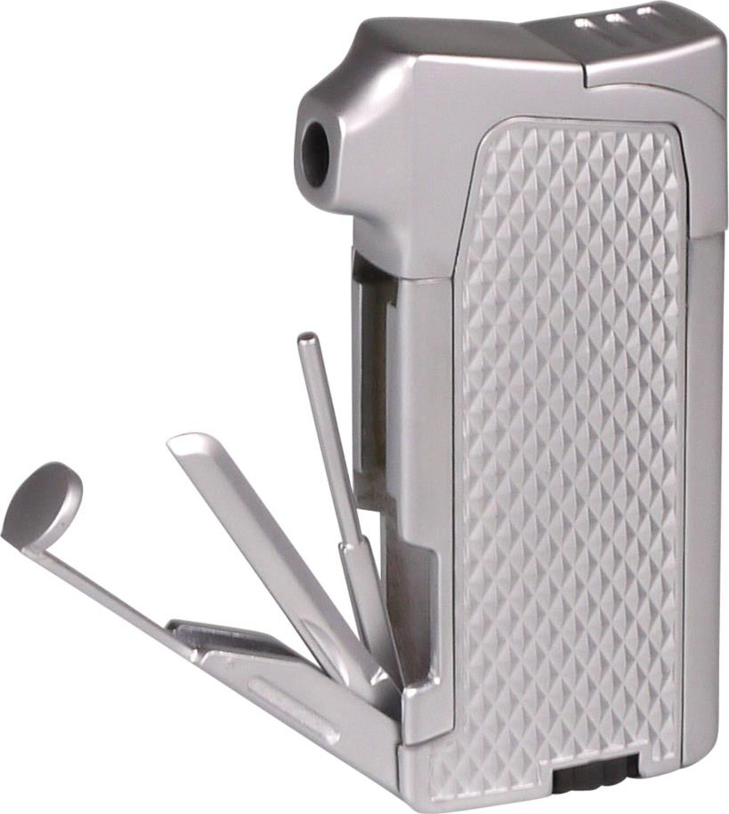 und ein integriertes Pfeifenbesteck. Die ansprechende und griffige