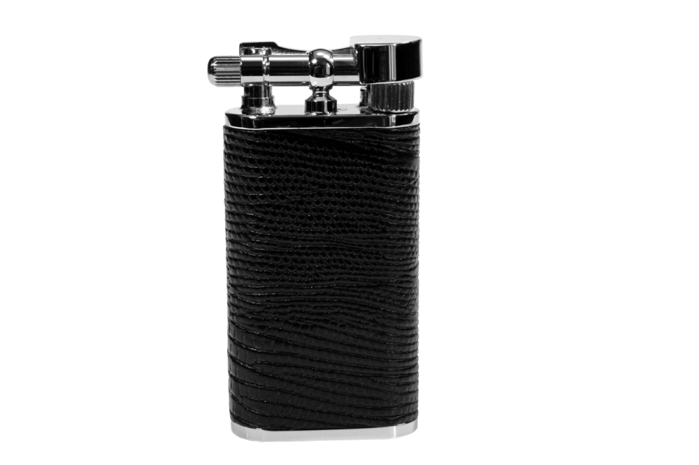 Flamme und extra großem Messingtank. Mit geprägtem Rindleder bezogen.