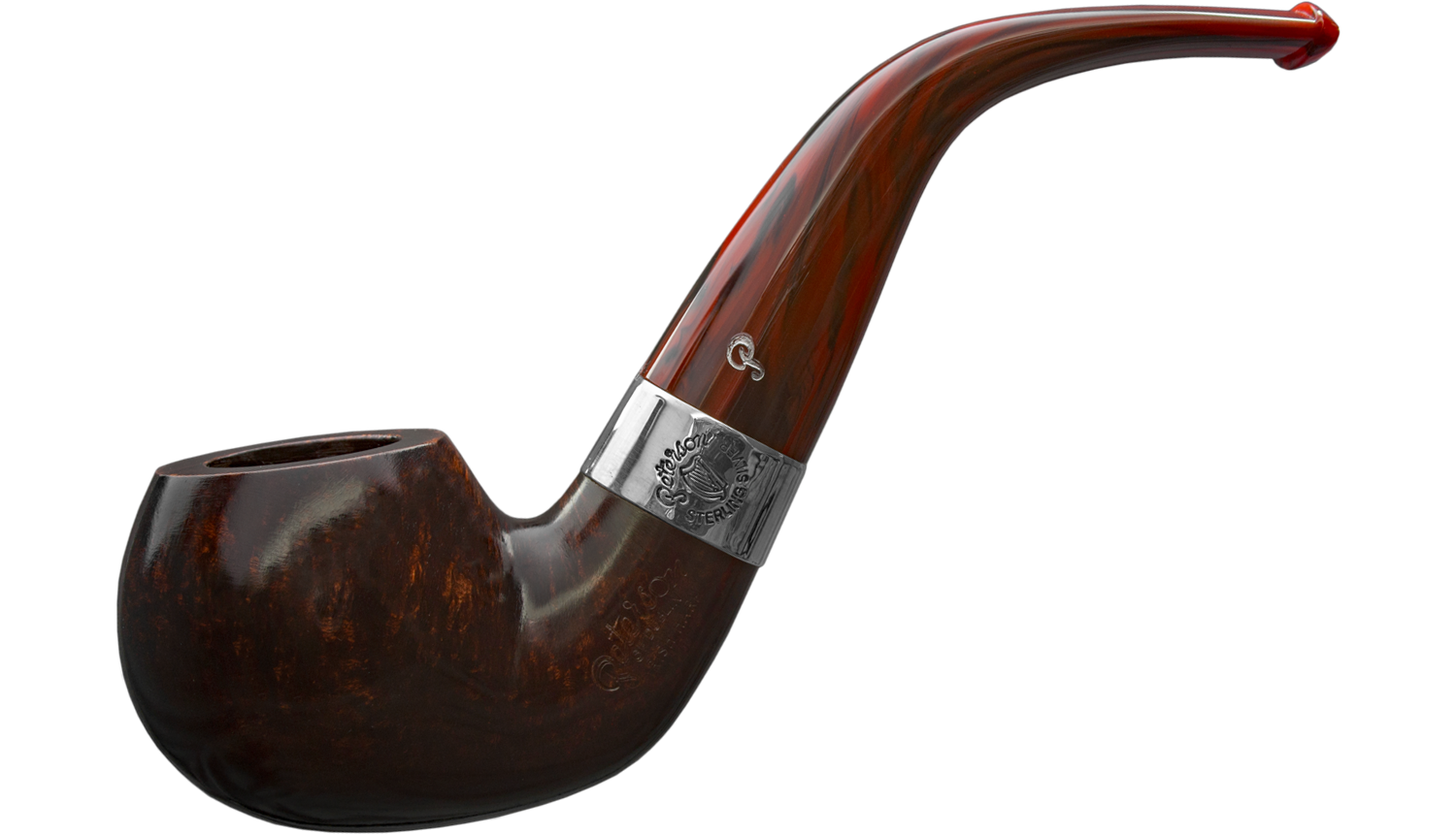 Die Peterson Irish Harp 03 ist eine klassische Irische Briar‑Pfeife mit gebogener Form, Sterling‑Silberring mit Harfen‑Motiv und Cumberland‑Acryl‑Mundstück – eine elegante Alltags‑ und Sammlerpfeife, die traditionelle Handwerkskunst, stilvolle Optik und angenehme Rauch‑Performance verbindet.