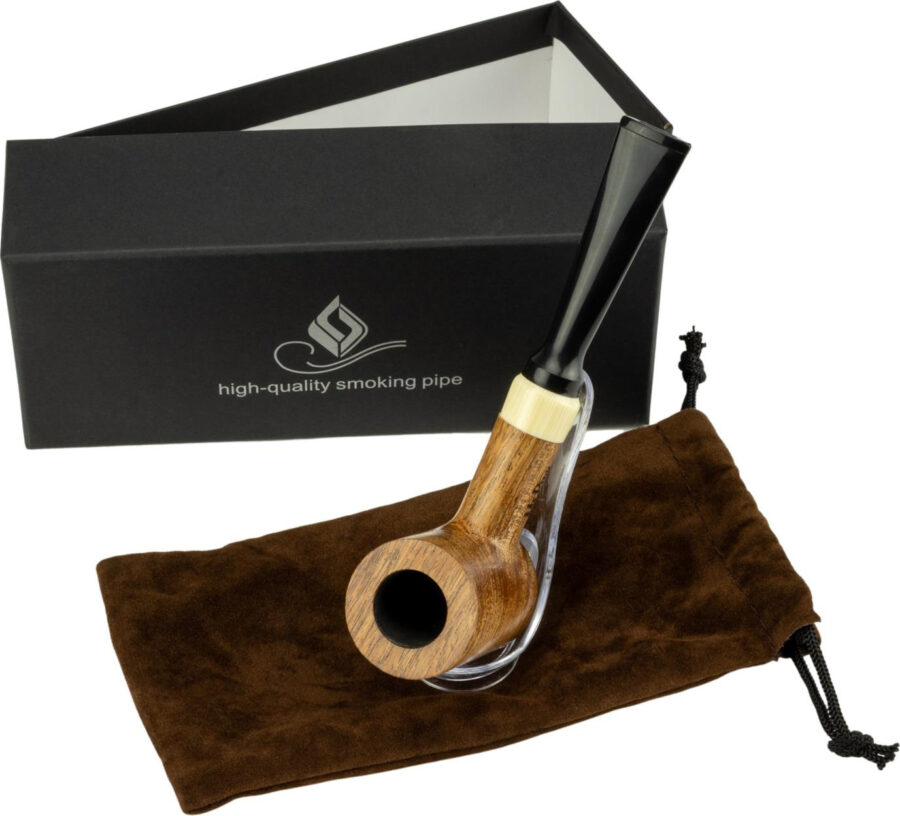 Pfeife "Mr.Pipe" Redwood braun poliert 9mm, weißer Ring, KS-Mund in EP mit Beutel und Pfeifenständer aus Kunststoff Artikelhighlights - Redwood, Poker-Form - 9 mm