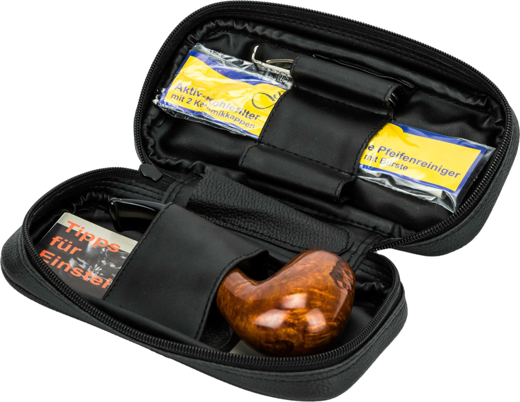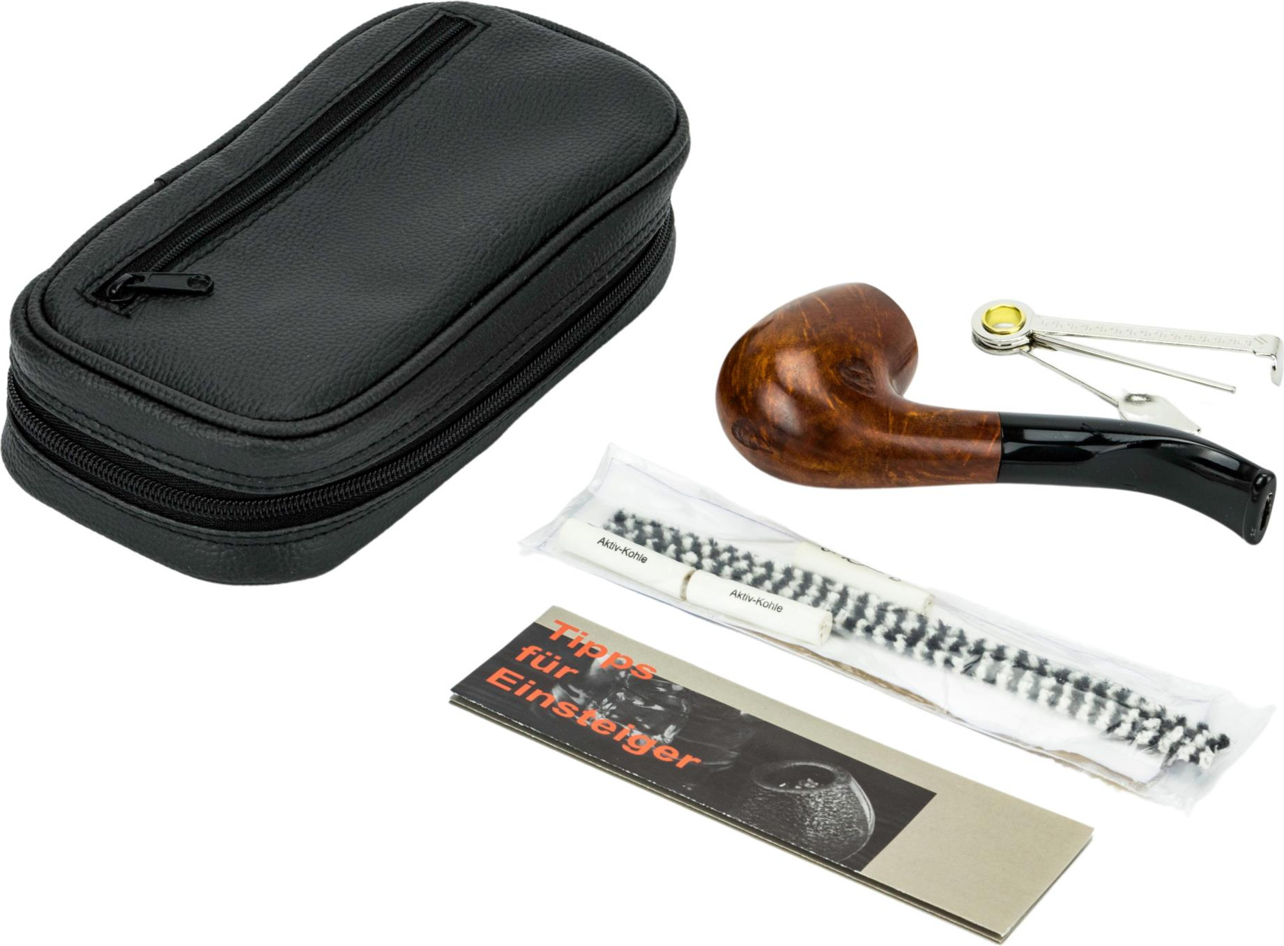Inhalt: Pfeife rustik Spot hellbraun, Pfeifentasche Leder