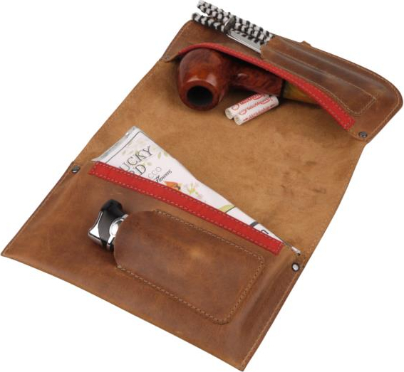 Pfeifen-Rollbeutel Leder braun antik 18cm / 1er