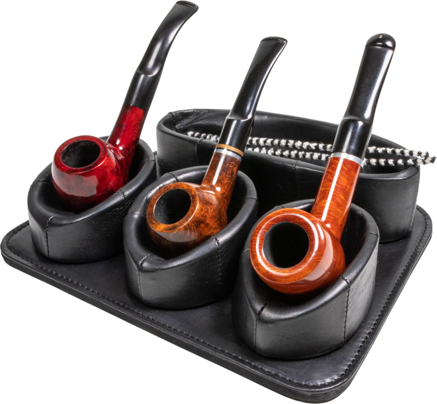 Pfeifenständer Pantoffel Leder schwarz antik 3er mit Ablagefach
