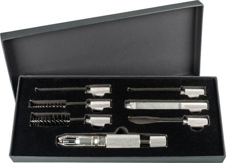 Für die regelmäßige Pfeifenpflege empfehlen wir Ihnen das 7-teilige Pipe Service Set im funktionellen Etui.
