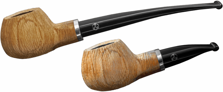 Knubbeliger Handschmeichler mit einem extrakurzen Mundstück und einem zweiten Lesepfeifenmundstück aus Acryl. In der langen Version dann 20cm Länge.