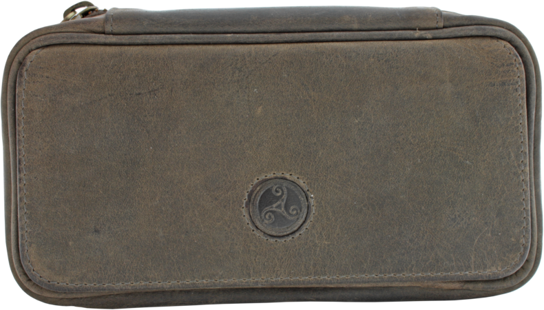 Pfeifentasche für 2 Pfeifen aus weichem Rindleder mit Vordertasche für Utensilien. Ausgestattet mit einem strapazierfähigen YKK Reißverschluss und verchromten Magnetverschlüssen.