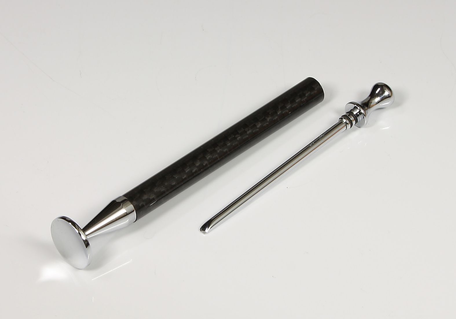 Formschöner Stopfer mit extra langem Dorn und leicht gewölbter Stopffläche.