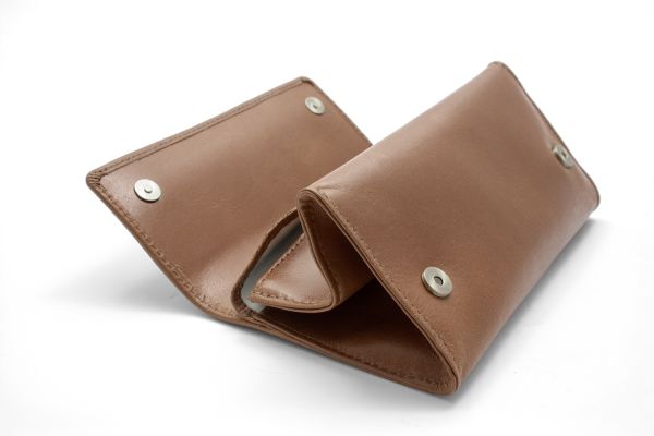 Durch die Farbe und Textur wirkt der Beutel etwas „edler“ und traditioneller als vergleichbare schwarze Modelle. - Magnet‑ oder Druckknopfverschluss:
