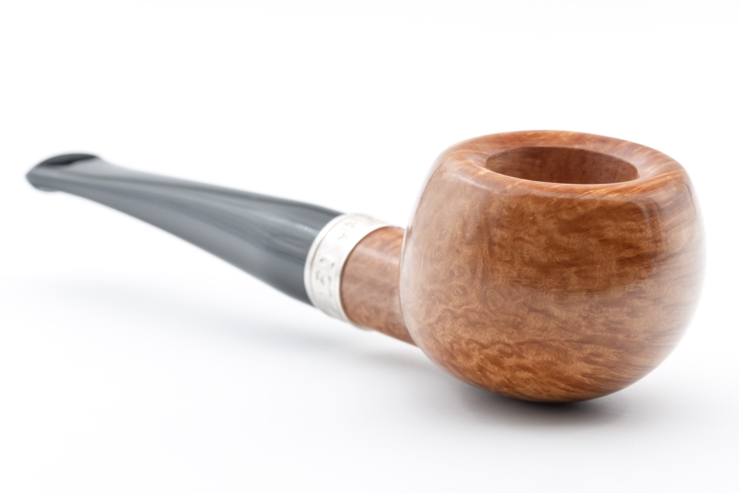 Dieses Modell zeichnet sich durch weiche, fließende Linien, eine abgesenkte Schale (Bowl) und einen kurzen, kompakten Holm aus, was der Pfeife ein elegantes und zugleich zeitgemäßes Aussehen verleiht. Die Oberflächenbehandlung in hellbraun (light brown) verleiht der Pfeife einen warmen, klassischen Charakter, während das Acrylmundstück für komfortables Ziehen sorgt.