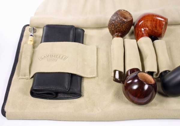 Die Savinelli Pipe Bag T660 Black ist eine hochwertige Pfeifen‑Rolltasche aus schwarzem Leder, die ideal für Pfeifenliebhaber geeignet ist, die mehrere Pfeifen sicher, organisiert und stilvoll transportieren möchten. Sie kombiniert klassisches italienisches Handwerk mit funktionalem Design und bietet Platz für mehrere Pfeifen samt Zubehör – perfekt für Reisen, Treffen oder den täglichen Gebrauch.