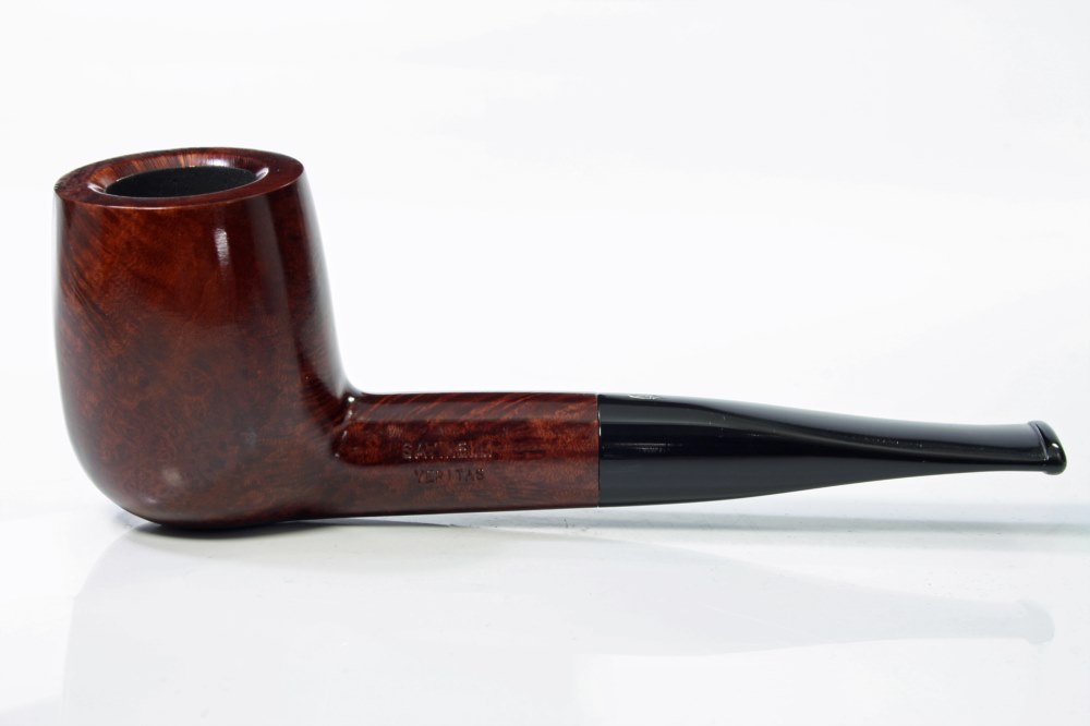Exklusiv von Savinelli für uns produziert. 12 Savinelli Klassiker in gewohnt hervorragender Verarbeitung: Das Holz wird zwei Jahre an der Luft getrocknet, der Rauchkanal perfekt gebohrt, das Mundstück im warmen Zustand in einer Form von Hand gebogen, der Kopf wird mit feinster Körnung riefenfrei poliert. Das Mundstück ohne Lichtspalt mit glattem Übergang an den Holm angepasst. Von Hand gebeizt und mit Carnauba Wachs auf Hochglanz gebracht. Weltweit wissen Pfeifenraucher diese Details zu schätzen. In Savinelli Veritas.