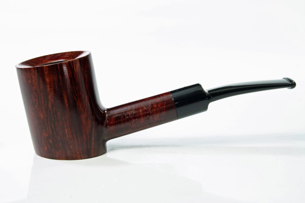 Das Holz wird zwei Jahre an der Luft getrocknet, der Rauchkanal perfekt gebohrt, das Mundstück im warmen Zustand in einer Form von Hand gebogen, der Kopf wird mit feinster Körnung riefenfrei poliert. Das Mundstück ohne Lichtspalt mit glattem Übergang an den Holm angepasst. Von Hand gebeizt und mit Carnauba Wachs auf Hochglanz gebracht. Weltweit wissen Pfeifenraucher diese Details zu schätzen. In Savinelli Veritas.