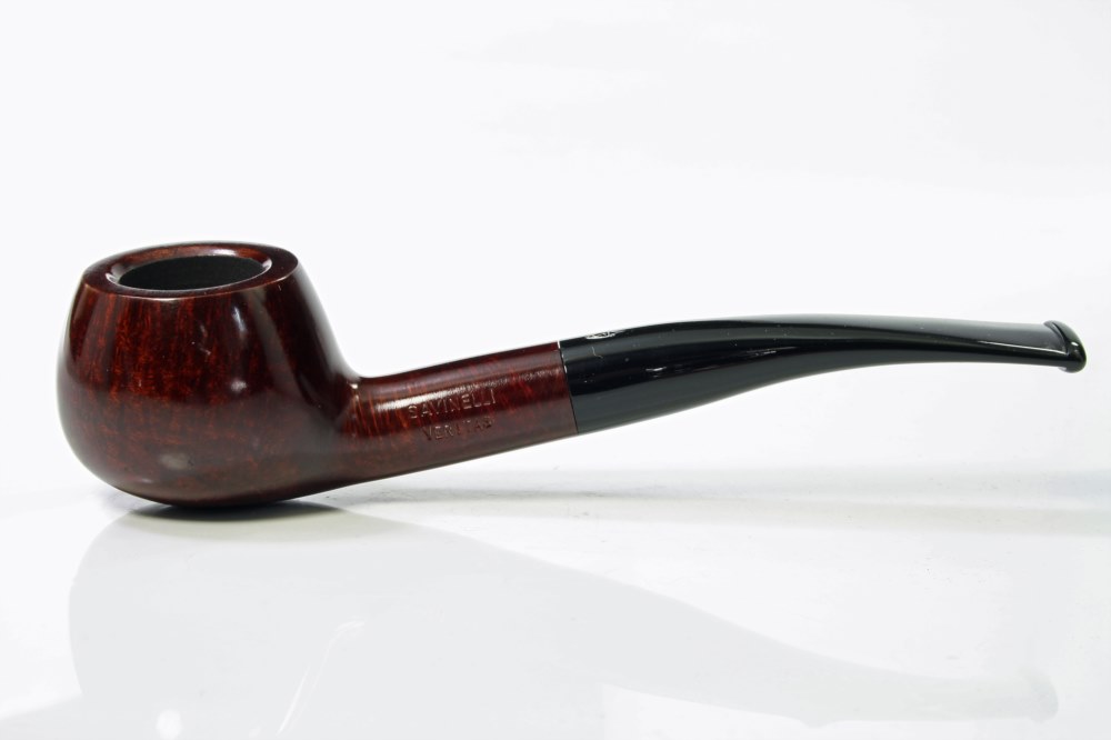 Exklusiv von Savinelli für uns produziert. 12 Savinelli Klassiker in gewohnt hervorragender Verarbeitung: Das Holz wird zwei Jahre an der Luft getrocknet, der Rauchkanal perfekt gebohrt, das Mundstück im warmen Zustand in einer Form von Hand gebogen, der Kopf wird mit feinster Körnung riefenfrei poliert. Das Mundstück ohne Lichtspalt mit glattem Übergang an den Holm angepasst. Von Hand gebeizt und mit Carnauba Wachs auf Hochglanz gebracht. Weltweit wissen Pfeifenraucher diese Details zu schätzen. In Savinelli Veritas.