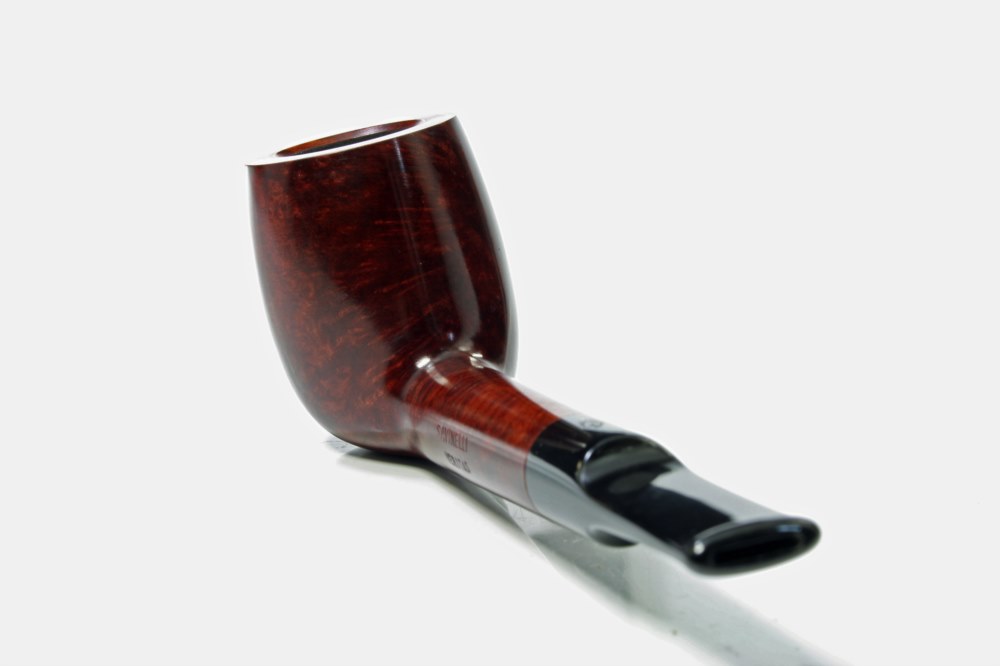 Exklusiv von Savinelli für uns produziert. 12 Savinelli Klassiker in gewohnt hervorragender Verarbeitung: Das Holz wird zwei Jahre an der Luft getrocknet, der Rauchkanal perfekt gebohrt, das Mundstück im warmen Zustand in einer Form von Hand gebogen, der Kopf wird mit feinster Körnung riefenfrei poliert. Das Mundstück ohne Lichtspalt mit glattem Übergang an den Holm angepasst. Von Hand gebeizt und mit Carnauba Wachs auf Hochglanz gebracht. Weltweit wissen Pfeifenraucher diese Details zu schätzen. In Savinelli Veritas.