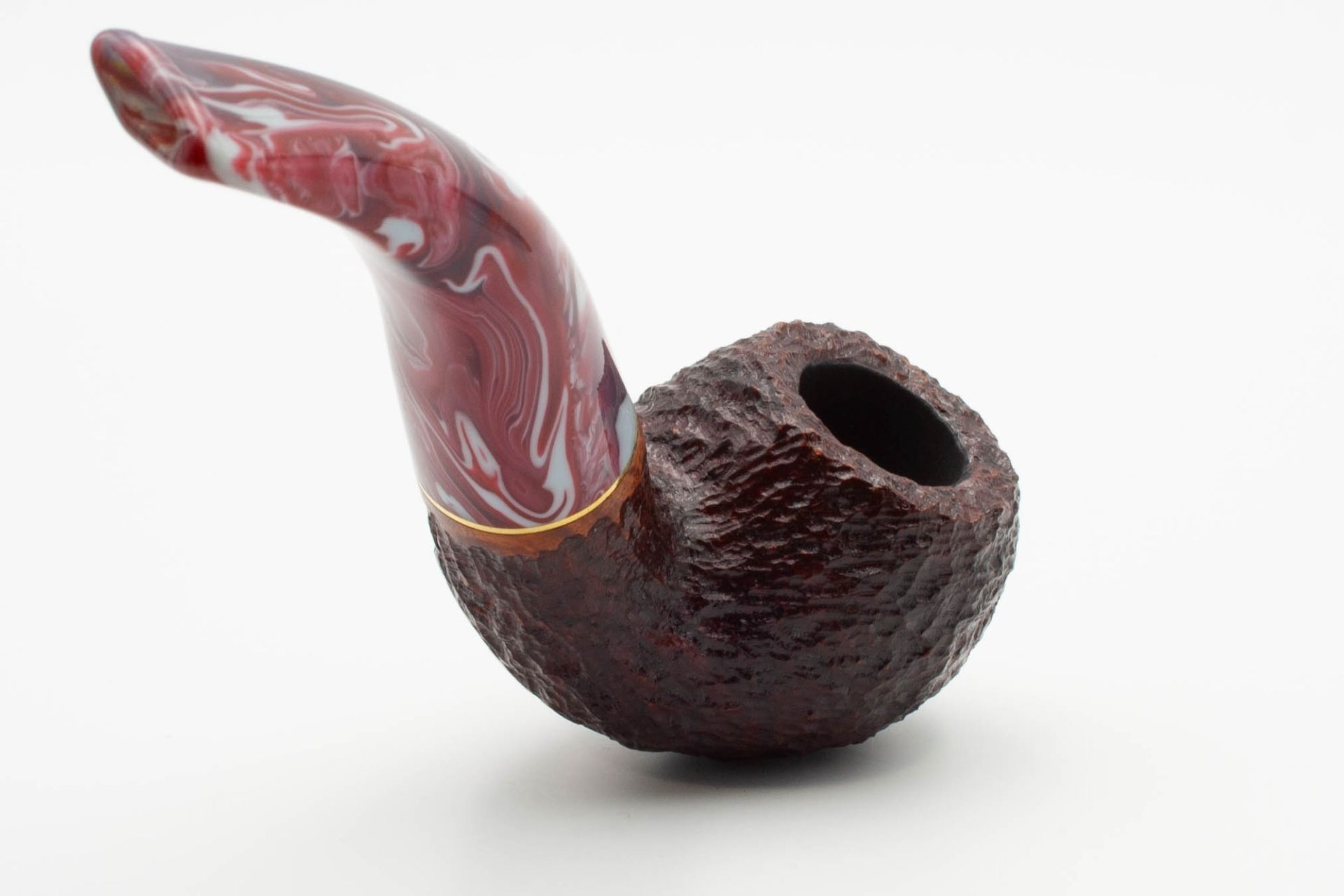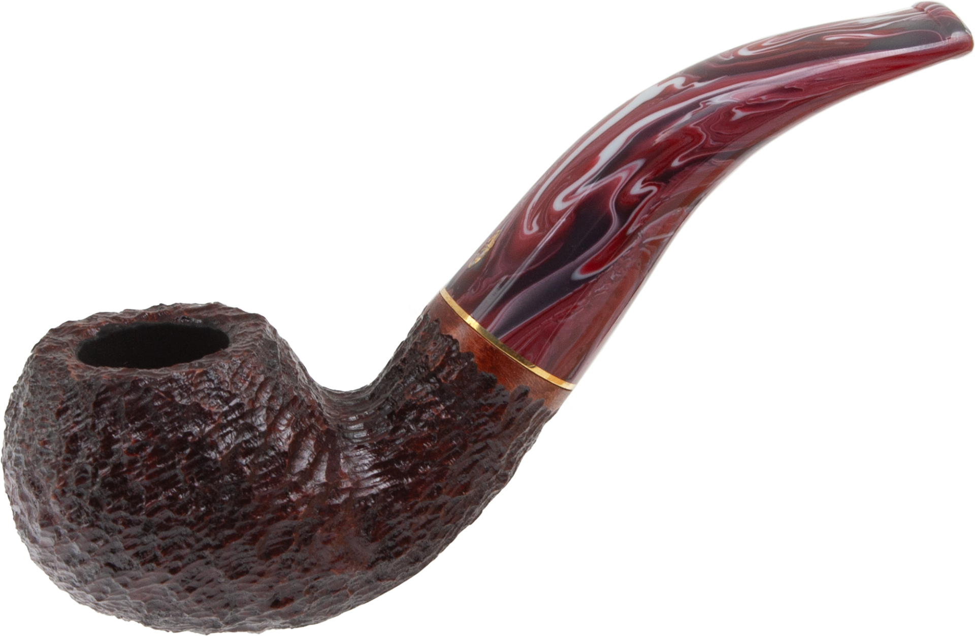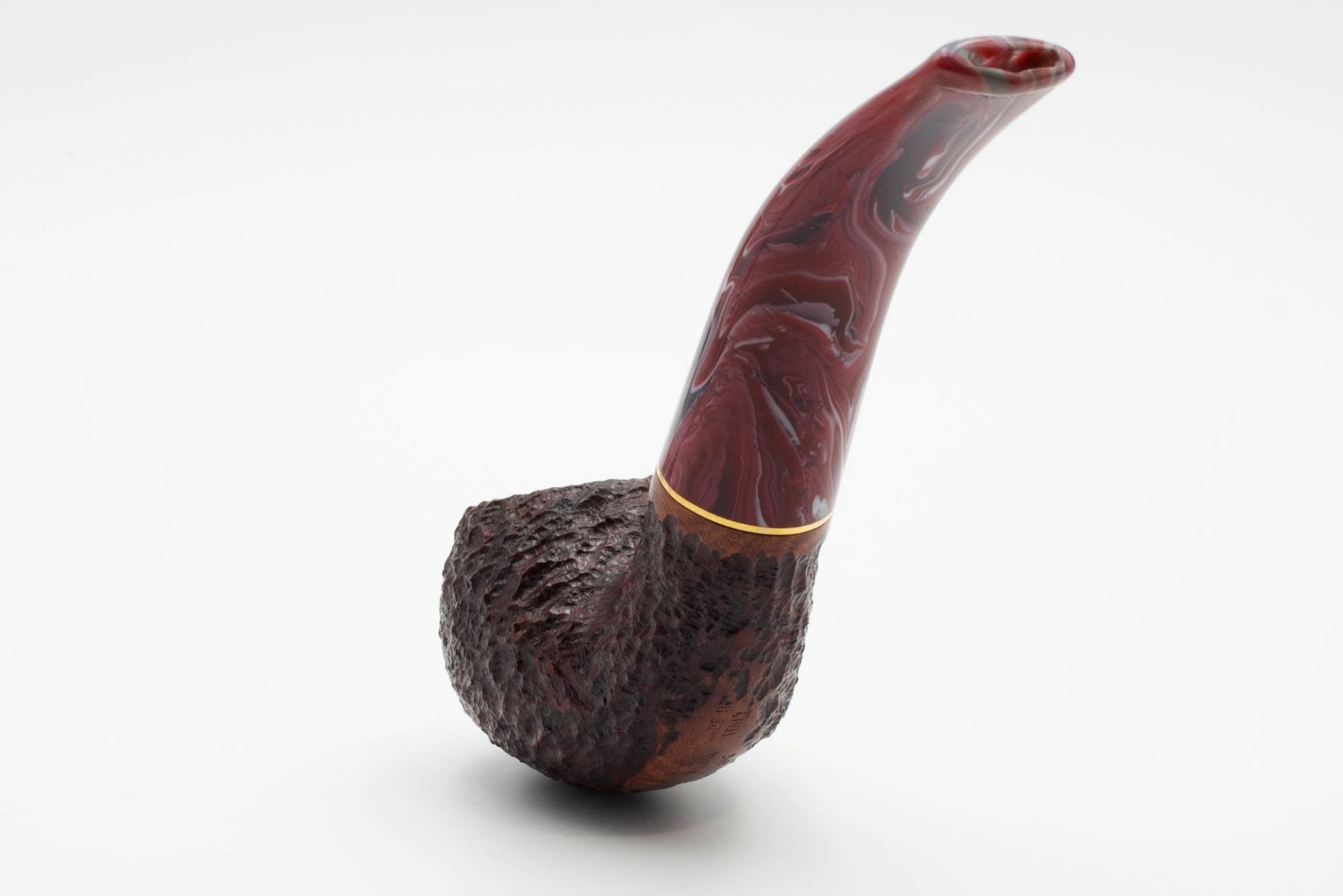 Dieses enthält Farbwirbel von rot über bordeaux bis hin zu dunkelblau. Ein schlanker goldfarbener Ring verleiht der Pfeife Klasse und Eleganz.