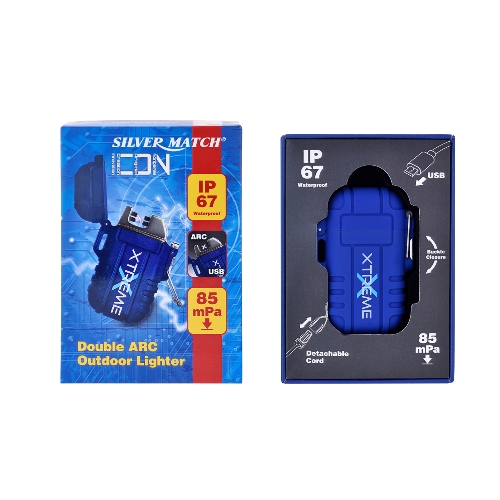 Feuerzeug Batterie SILVER MATCH Double Lichtbogen USB Icon blue