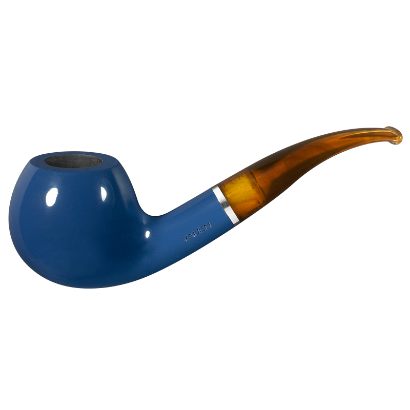 Die VAUEN „Azzurro“ ist eine Pfeifenserie, die Farbe und klassisches Design miteinander verbindet. Der Name Azzurro kommt aus dem Italienischen und bedeutet „hellblau“, was das prägende Merkmal dieser Serie ist: ein deckendes Blau des Holzes, kombiniert mit einem bernstein‑ bzw. braun‑melierten Acrylmundstück.