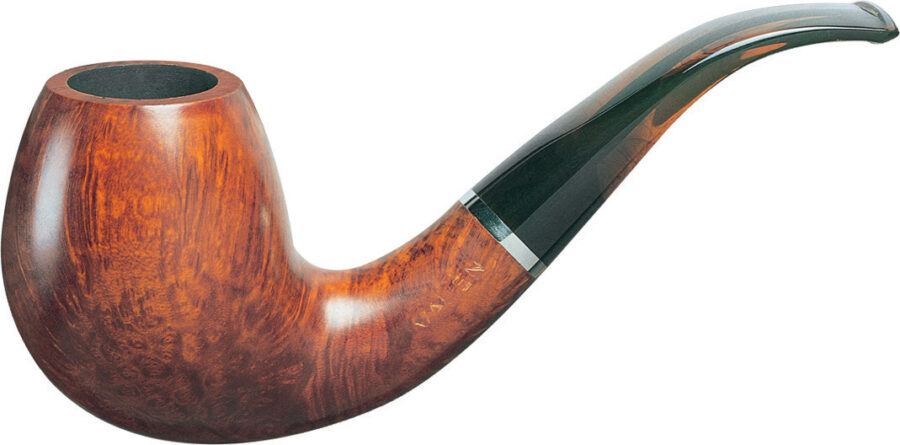 Transparentes, braun-marmoriertes Acrylmundstück, silberfarbener Ring.