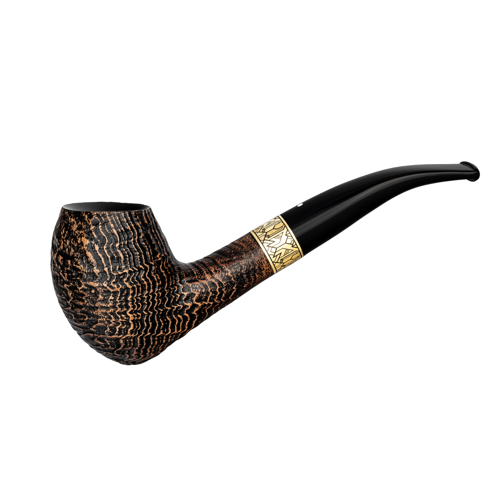 Die VAUEN Jay gehört zur Weißpunkt-Serie des Nürnberger Pfeifenherstellers VAUEN und lässt sich vom Art-Deco-Glamour der 1920er Jahre inspirieren. In der sandgestrahlten Version wirkt sie besonders nostalgisch und samtig strukturiert: Die Sandstrahlung betont die natürliche Holzstruktur des Briars und verleiht der Oberfläche eine texturierte, matte Optik, die optisch und haptisch sehr angenehm ist.