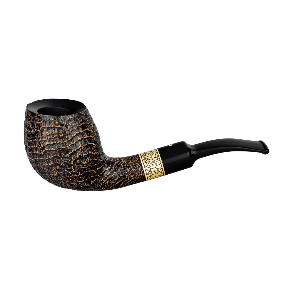 Die VAUEN Jay gehört zur Weißpunkt-Serie des Nürnberger Pfeifenherstellers VAUEN und lässt sich vom Art-Deco-Glamour der 1920er Jahre inspirieren. In der sandgestrahlten Version wirkt sie besonders nostalgisch und samtig strukturiert: Die Sandstrahlung betont die natürliche Holzstruktur des Briars und verleiht der Oberfläche eine texturierte, matte Optik, die optisch und haptisch sehr angenehm ist.