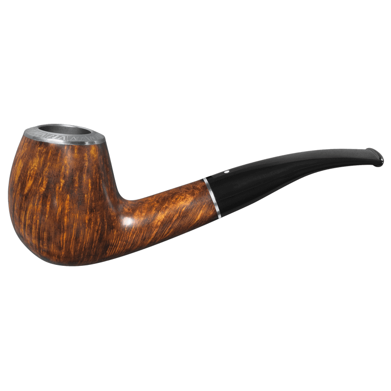 Silberfarbener Ring mit einer Zier-Gravur, der in das Top des Pfeifenkopfes eingelassen ist. Zwischen Holm und Mundstück sitzt ein schmaler Aluring.