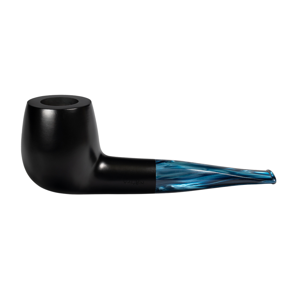 Die seidenmatte, schwarze Oberfläche der „Ray“ reduziert die Formensprache der sechs Kopfformen bewusst und lenkt den Blick auf das blau schimmernde Acrylmundstück, das bei Bewegung feine Farbnuancen offenbart und so für einen echten „Wow-Effekt“ sorgt. Die „Ray“ richtet sich an Pfeifenfreunde, die ruhiges Design, präzise Verarbeitung und subtile Akzente zu schätzen wissen.
