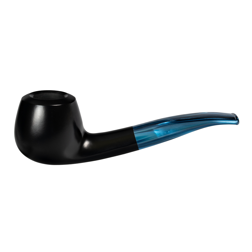 Ästhetik: Die Kombination aus schwarz satinierter Oberfläche und dunkelblauem Mundstück macht die Ray zu einem stilvollen, aber zurückhaltenden Pfeifenmodell – ideal für moderne Genießer.
