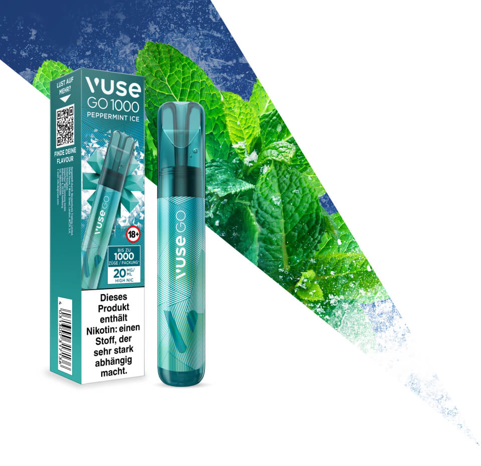 Verbesserte Technologie trifft auf längeren Genuss: Mit Vuse GO 1000 Peppermint Ice dampfst du jetzt bis zu 1000* Züge. Mit einem klassischen Pfefferminz-Flavour, verfeinert durch einen eiskalten Twist, bietet dir diese Einmal Vape ein unvergleichliches Erlebnis.