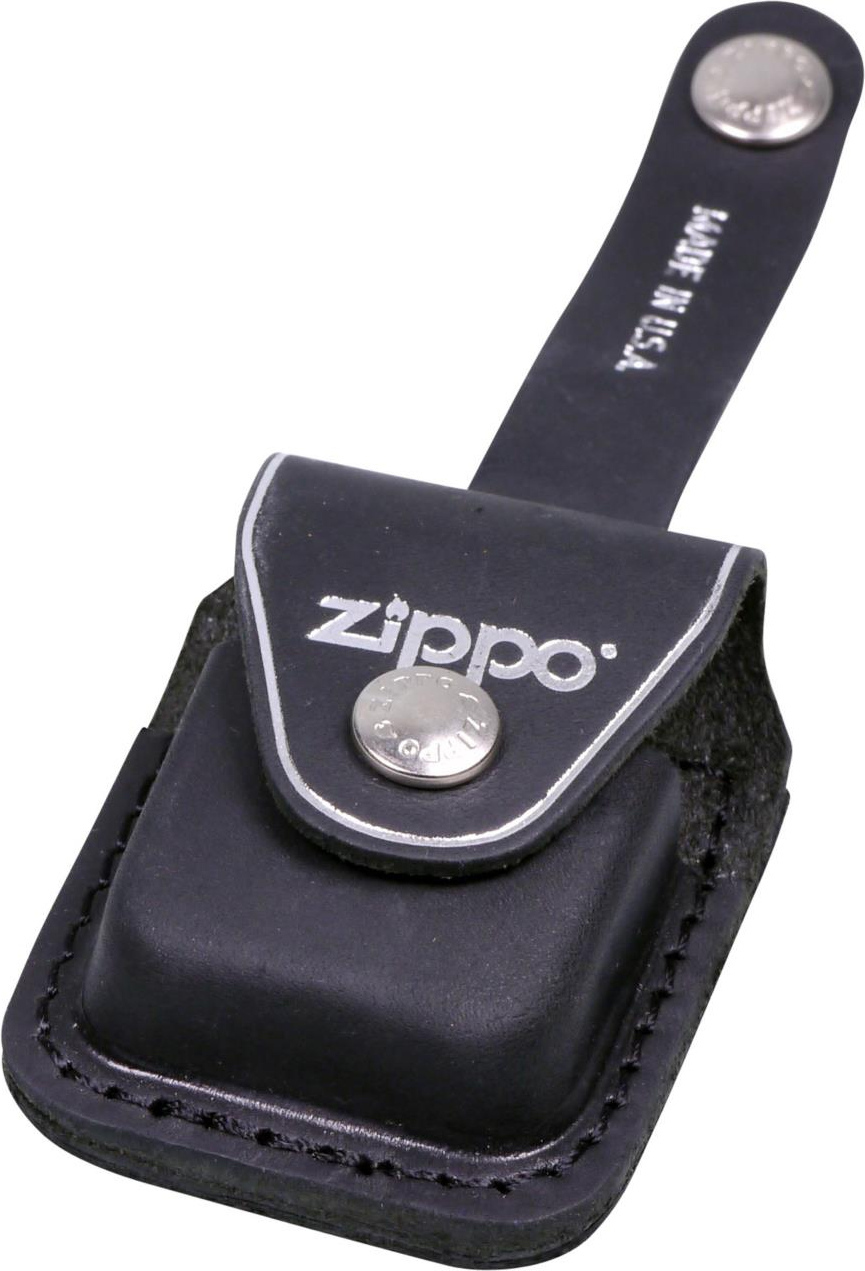ZIPPO chrom gebürstet im Set mit ZIPPO Ledertasche schwarz/Schlaufe