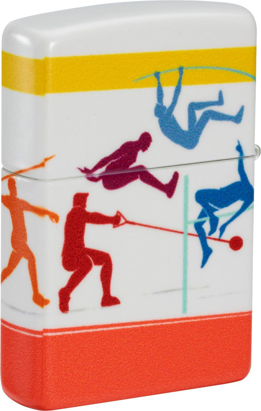 Ein sportlich gestaltetes, windfestes Zippo‑Feuerzeug, das durch sein farbiges Leichtathletik‑Motiv und die 540°‑Rundumgestaltung besticht. Es eignet sich sowohl für den Alltagsgebrauch als auch als Geschenk für Sportfans oder Sammler.