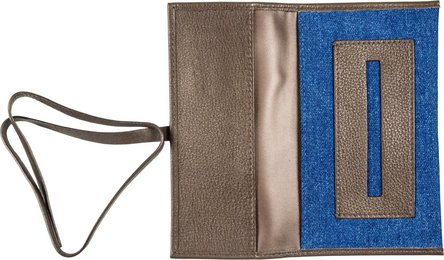 - Kombination aus robustem Jeansmaterial und Lederoptik in Mocca